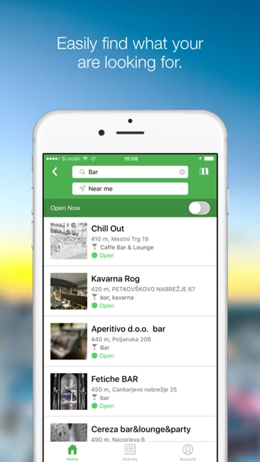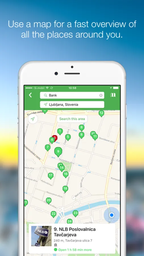 - see the results on the map and the distance from your present location