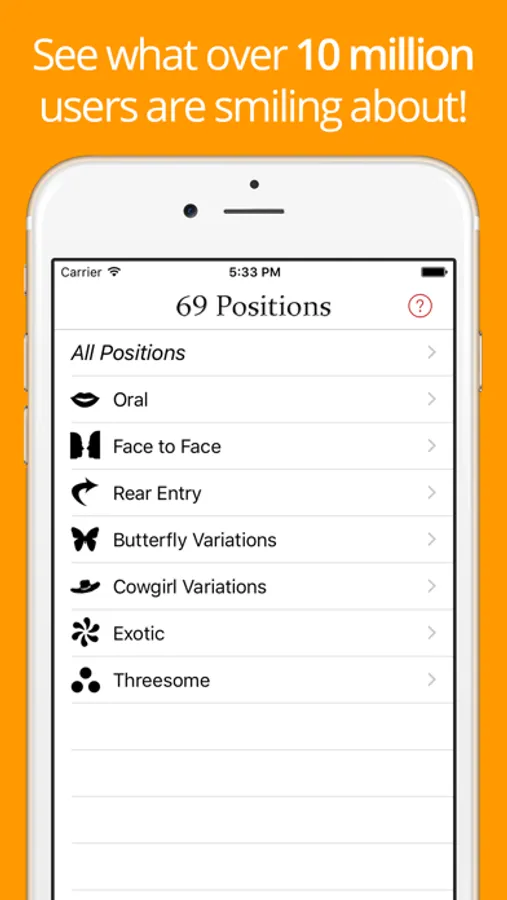 69 Positions is the ultimate illustrated guide to sex positions for the iPhone and iPod touch. Don't be fooled by cheap Kamasutra imitations, 69 Positions is the real deal. 69 Positions features 115 excellent positions that have spiced up the love lives of couples around the world. This app lets you brush up on all the classics, while adding many new and exciting positions to your repertoire.