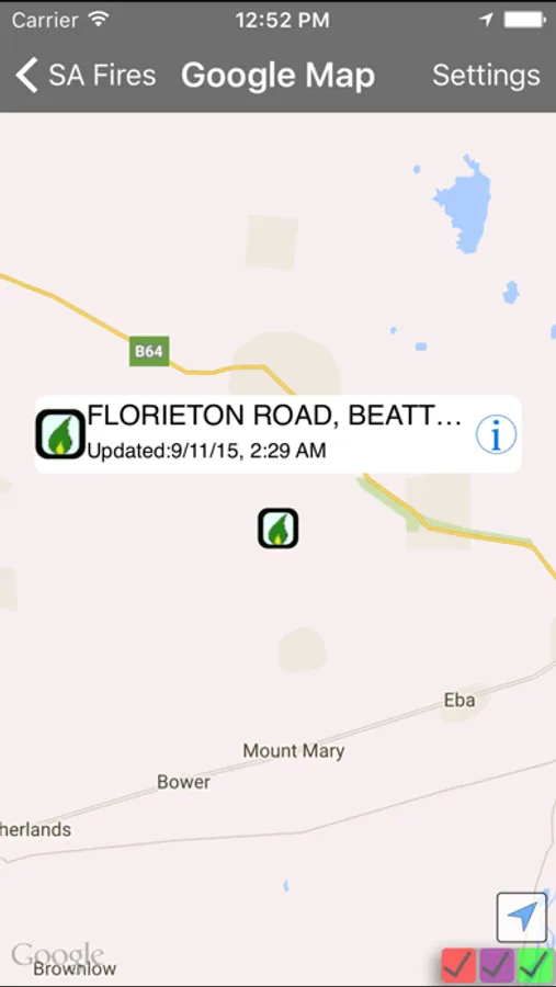 SA Fires provides the current fire information from South Australia's Country Fire Service's web site.