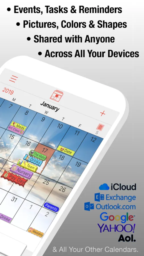 * Google, Outlook, iCal, Yahoo, iCloud - Fast Sync.
