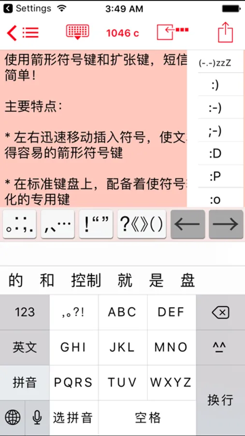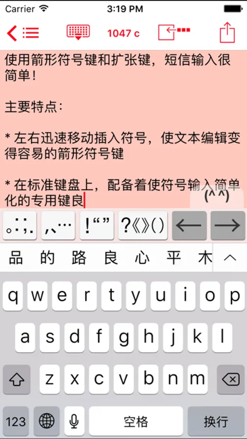 Type messages in Chinese easier and faster with our extended keys for the your iPhone/iPod Chinese keyboard.