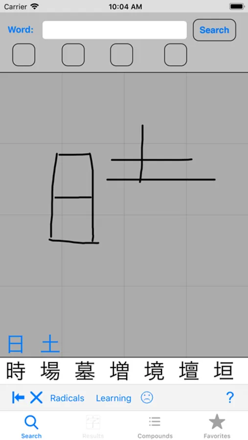 Lookups are element based, using the original system of 632 basic visual elements. No need to count strokes, JiShop’s radical-based dictionary does the work for you. The table of radicals allows you to fully specify any kanji.