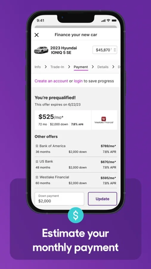 Whether you’re looking to sell or trade-in, get an instant offer on your current vehicle by answering just a few questions, all without leaving the app.