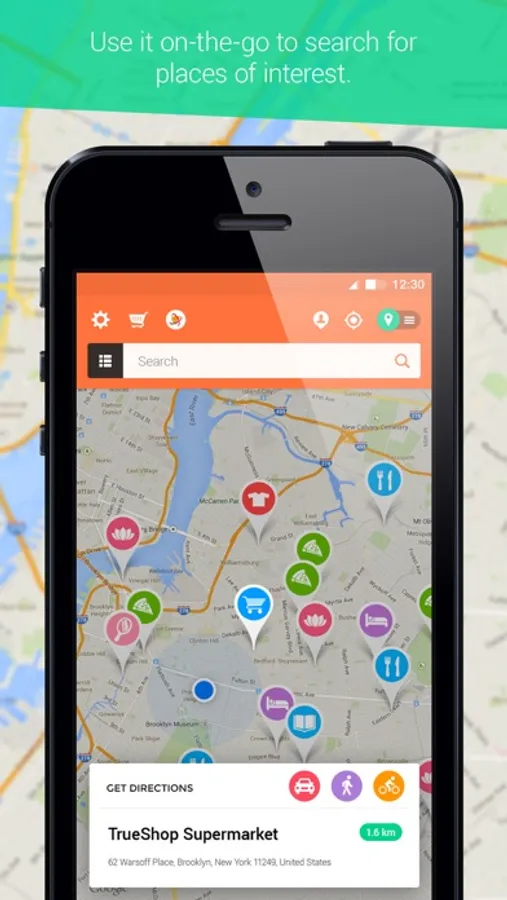 The application is highly customizable and the user can add and save his/her own search terms for future use. Find Near Me also tells you how far the searched location is from your current position.
