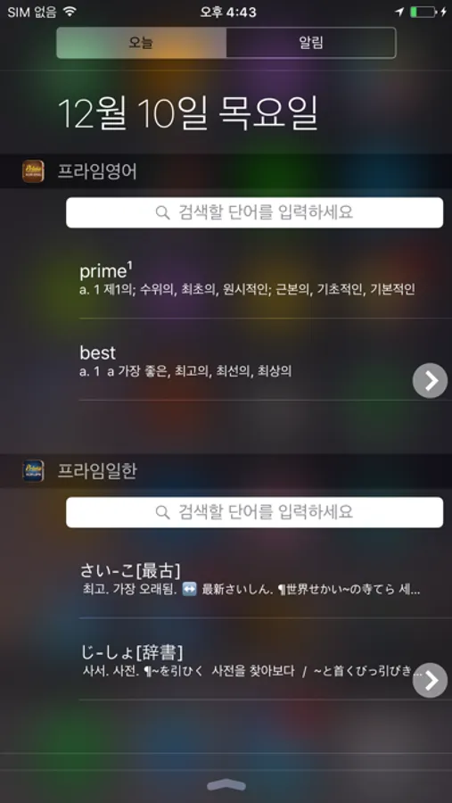 3. 사전 위젯 기능 제공: 설정 단어 보기 및 검색페이지 바로 가기