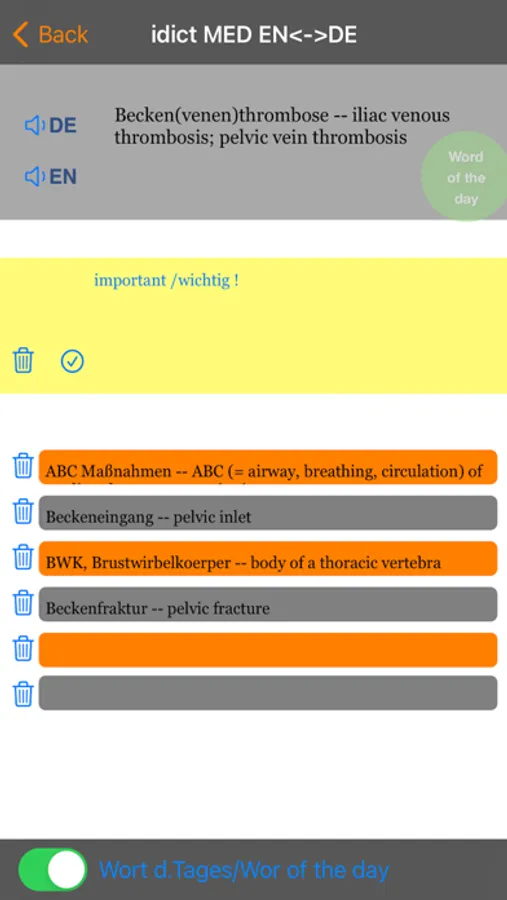 ► Now shows you the "vocabulary of the day" so you can learn easily new medical vocabularies ! (can be disabled)