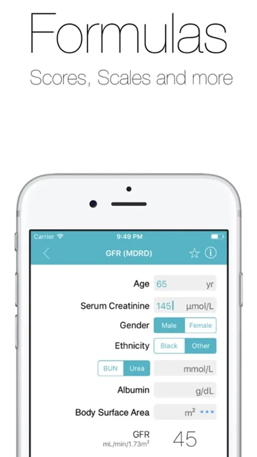 • Nephrology – Cockcroft, GFR calculators, MDRD, Water Deficit & RIFLE