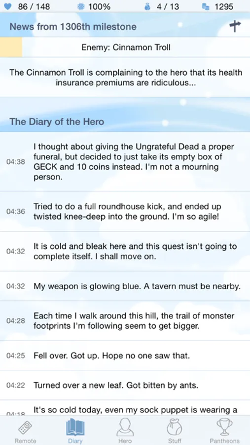 It's a parody take on MMORPG and levelling. Here you can do literally nothing, while your character progresses on his own, writing a story on the go. Or you could show this mortal your will and control him (unsuccessfully). Either way, it'll be lots of fun. And puns. Lots of them.