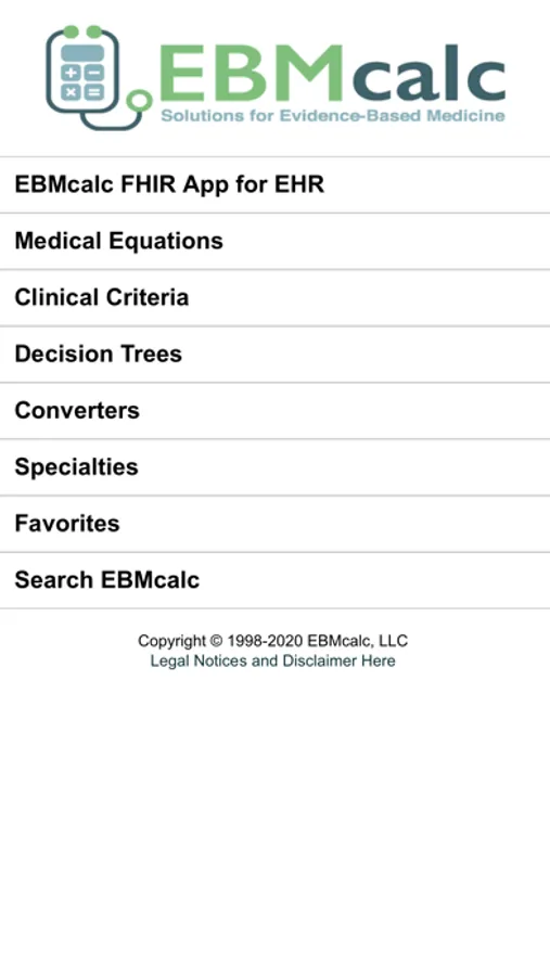 EBMcalc encompasses over 720 pertinent medical formulae, clinical criteria sets, decision tree tools and dose/unit converters used every day by clinicians, educators, nurses, pharmacologists and students of all types. With the growing emphasis on Evidence-Based Medicine, there has never been a greater need for a system such as EBMcalc.