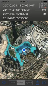 In this GPS location app, you can view your current coordinates, date, and time while scrolling through a map and share your location via messaging or social media. Includes coordinate formats, map scrolling, sharing options, and screenshot attachment features.