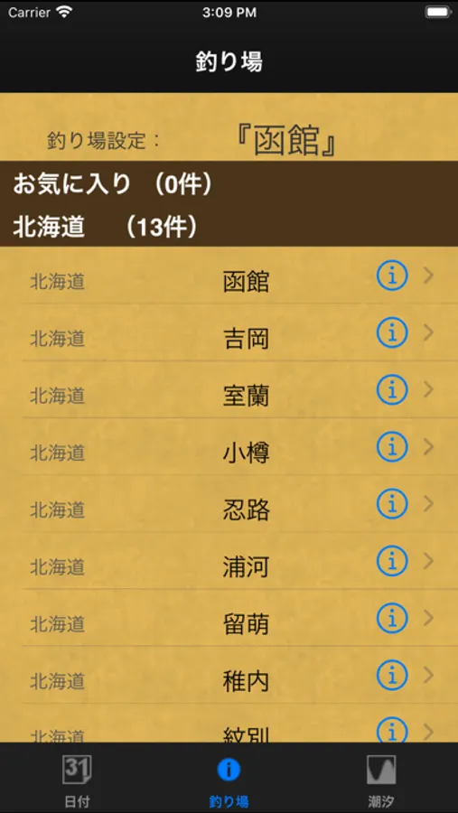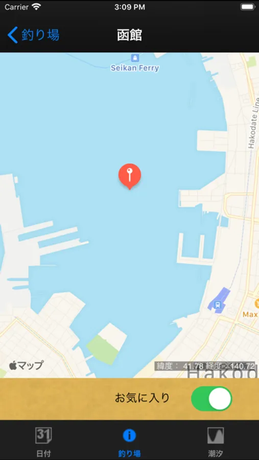 ・良く行く釣り場は、お気に入り登録することで釣り場リストの上部へ表示されます。