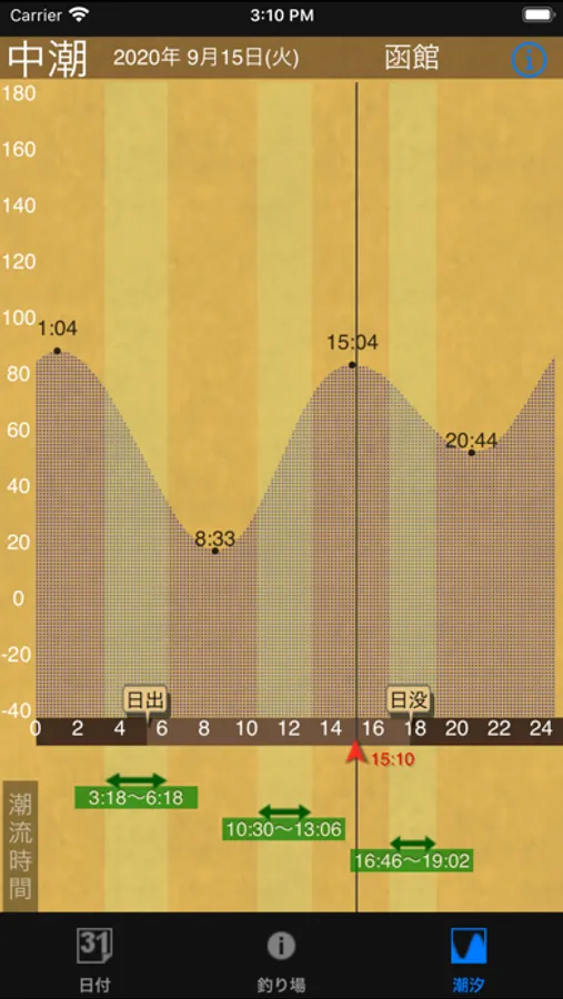 また、釣行する際、日の出の時間や潮流時間を事前に知ることができます。