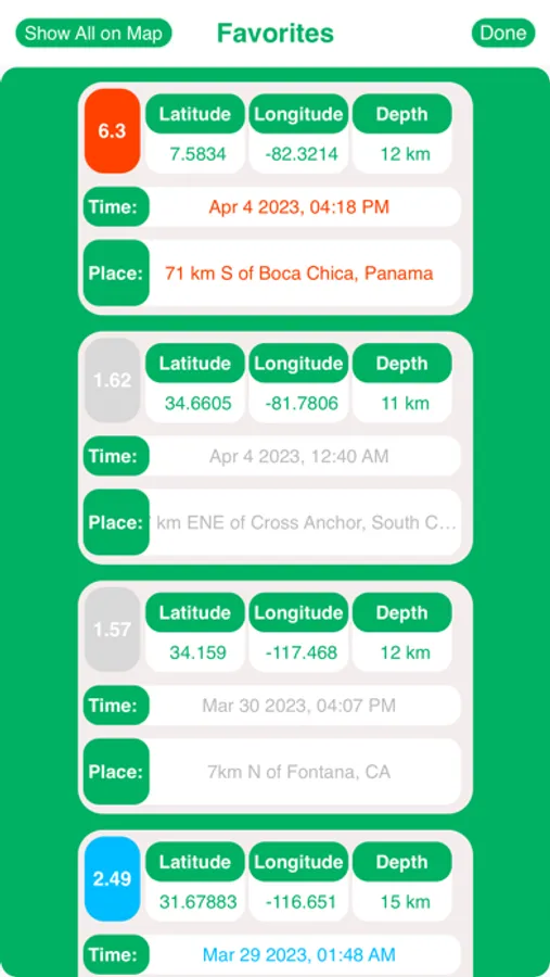 EarthQuake Map shows the location of the earthquakes in the World with different colour with your settings!