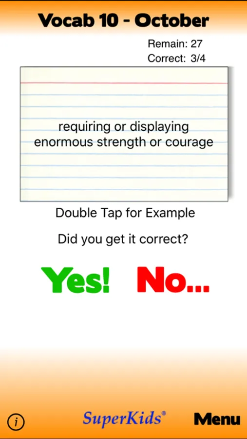Words included in this app are based on the vocabulary set honed by millions of users of SuperKids.com's online vocabulary tools over the last ten years.