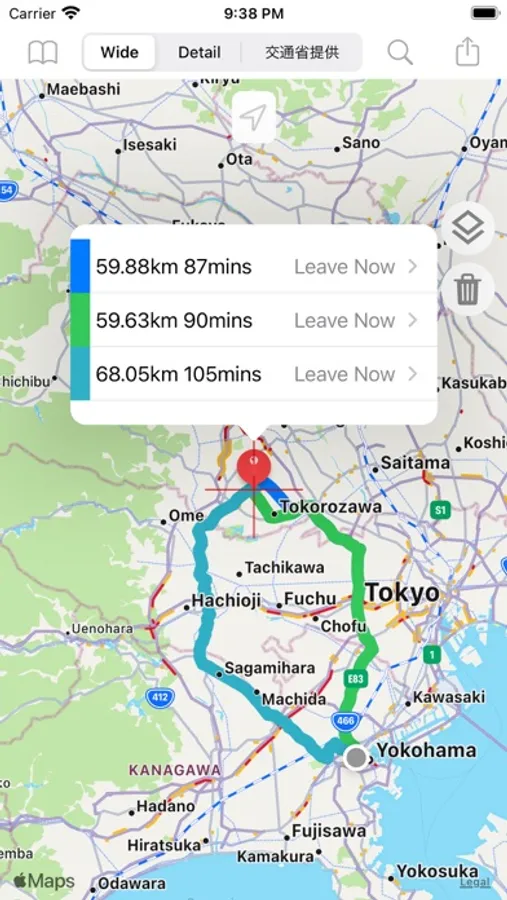 2, You can find more than one direction information provided by Apple directions service, only by One Tap on Map (Please tap the + icon on Map) . You also can view the direction details in Map with Look Around feature(ONLY available for iOS 16.0 and later).