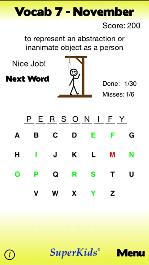 Words included in this app are based on the vocabulary set honed by millions of users of SuperKids.com's online vocabulary tools over the last ten years.