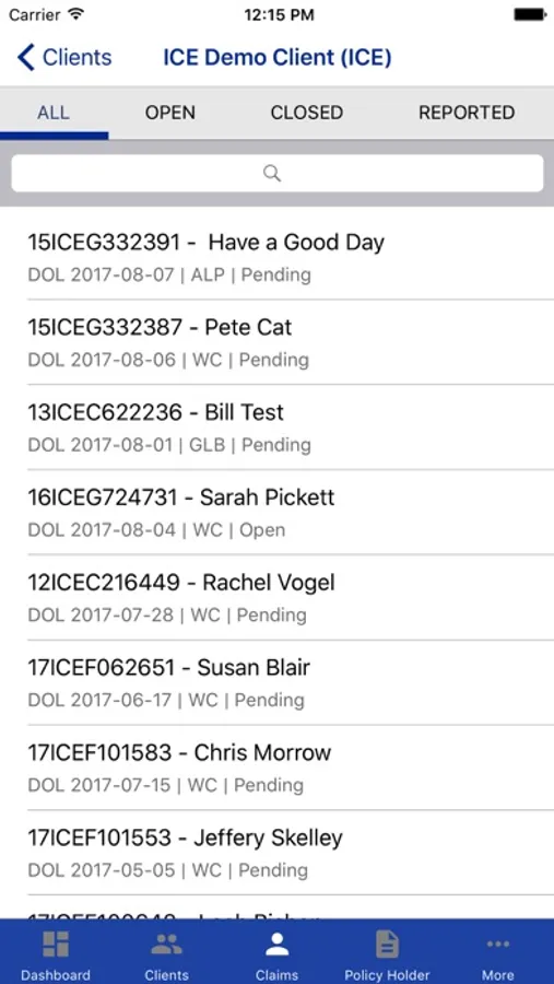 CCMSI Application for Client portal access. This application allows all CCMSI clients to login with their authentication credentials and access their data for claims and claimant information. It provides summary and detailed information on open and closed claims.