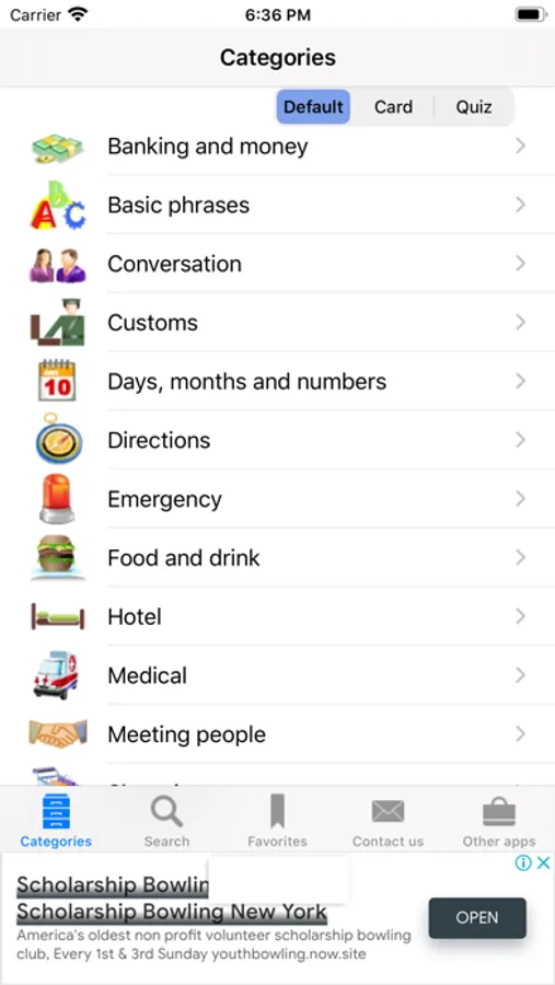 1. 14 CATEGORIES. This application has various categories such as Food, Banking, Directions, Medical, Everyday Conversation and many more