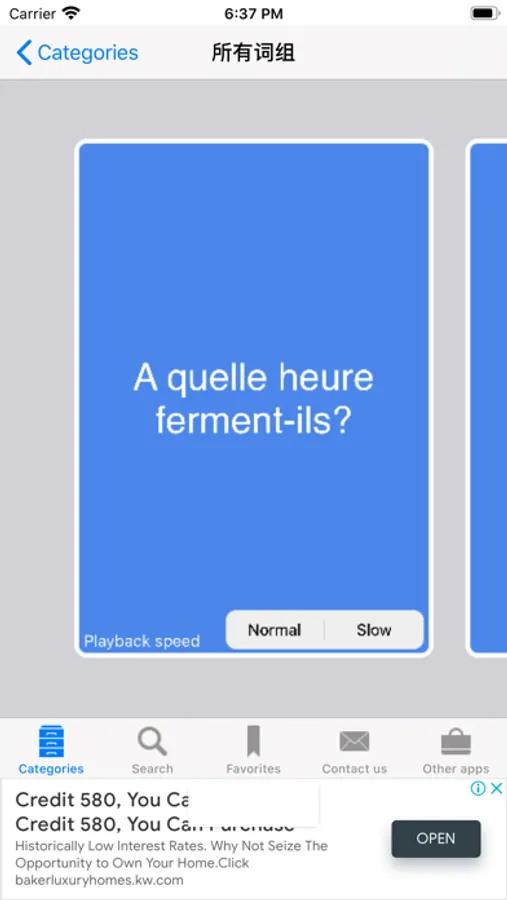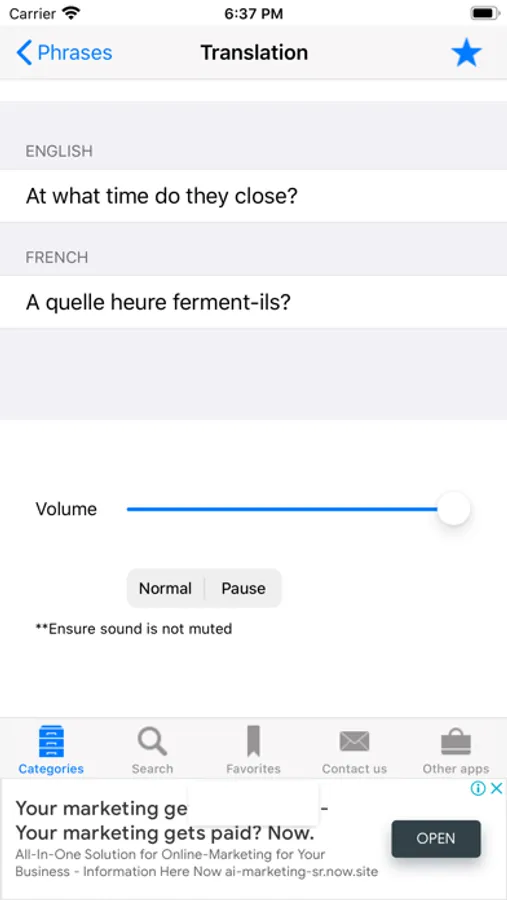 More than 700 phrases, 2 speeds NORMAL and SLOW. RECORDED by native FRENCH SPEAKERS no internet needed. This app has more features than any other similar translator app.
