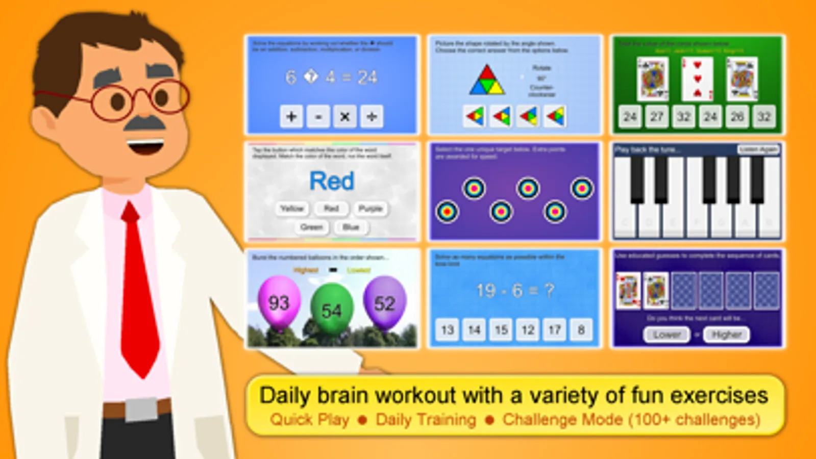 Quick-play Brain Exercises - Pick an exercise, choose difficulty and time settings and challenge yourself to set high scores (or practice without any time limits).