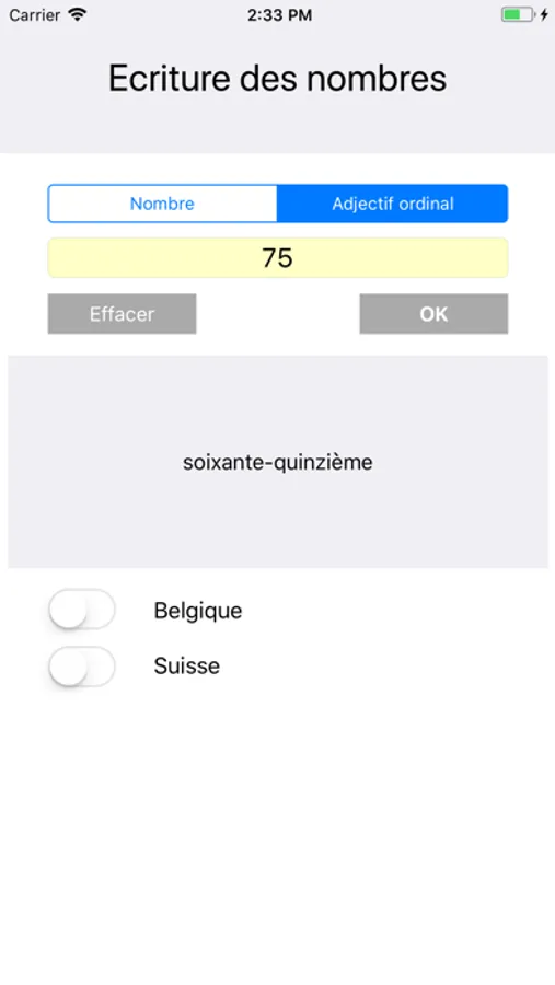 Les adjectifs ordinaux ont été ajoutés à l'application : premier, deuxième etc.