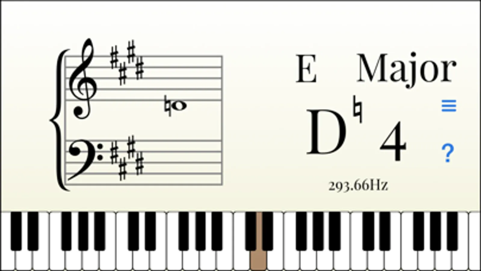 - Displays notes on a piano keyboard.