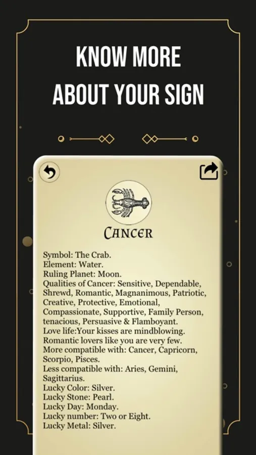 *Get your complete astrological profile: Know your astrological Symbol, Element, Ruling Planet, Love Life, Qualities based on your sun sign, Lucky Color, Lucky Stone, Lucky Day, Lucky Number and more