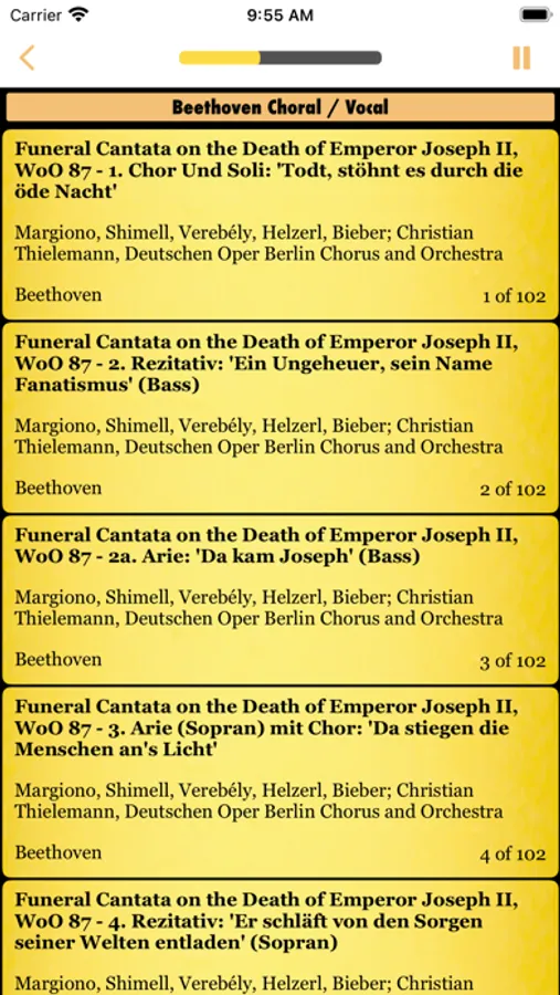 Albumen is a simple interface for viewing and playing songs (tracks) in your music library, organized into albums, podcasts, audiobooks, and playlists. Its chief virtues are: (1) song title and artist information is displayed in full, without truncation (unlike the Music app); (2) in addition to music, audiobooks and podcasts are displayed (unlike the Music app).