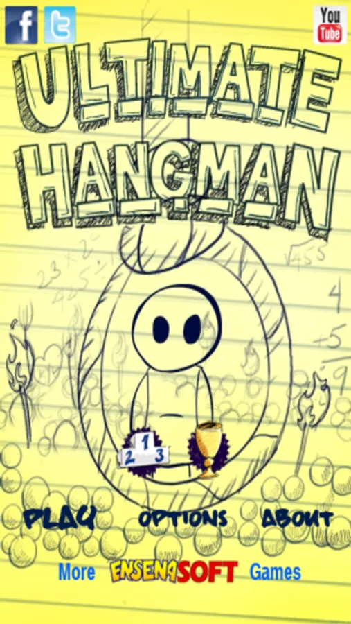 Ultimate Hangman Go is a must have hangman game with 4 awesome themes (Doodle Hangman, Chillin' Chalk, Christmas Snowman and Flower Power), 11 great songs and 73 word categories including 7 random modes.