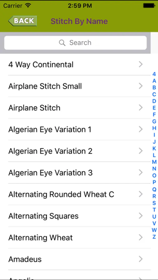Scroll through the stitch diagrams one at a time, use our handy indexes or search for a stitch by name.