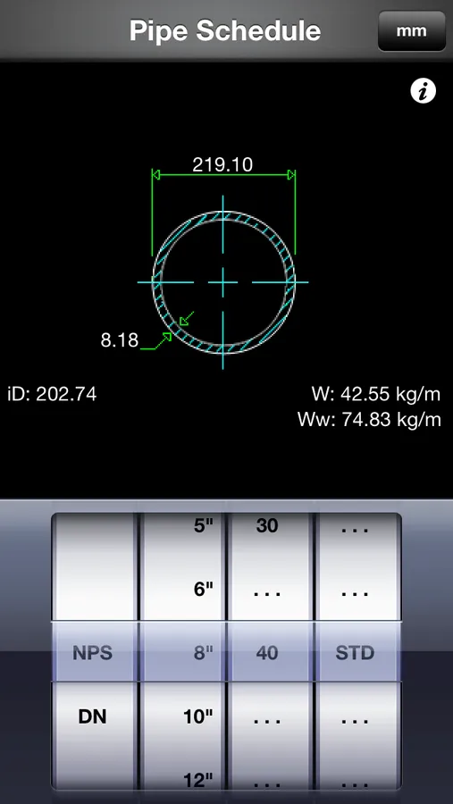 User interface is presented in an easy one page set up, interchangeable to both US Customary Units and SI Units by scrolling the pickers and touching the button switch.