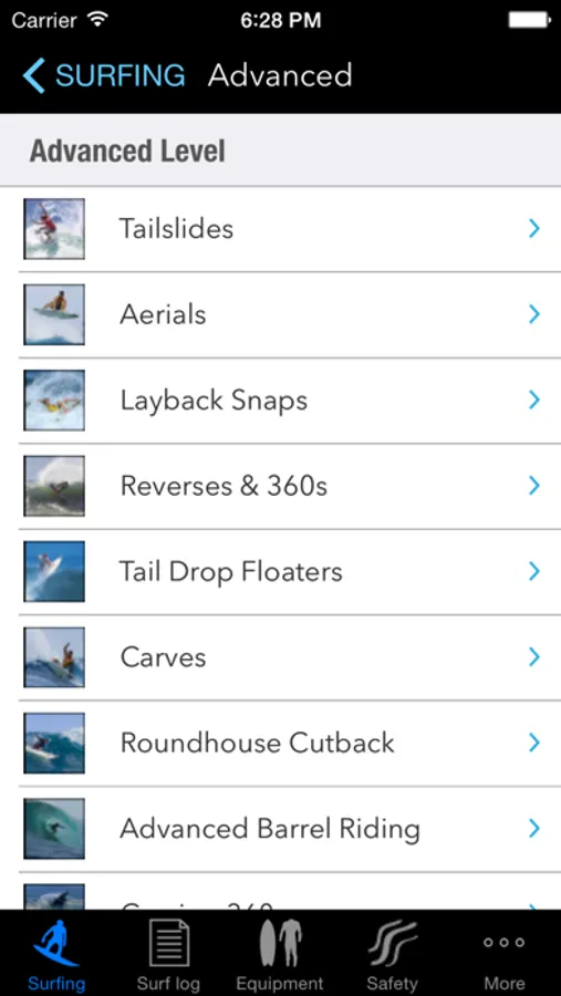 Advanced Level - Learn the most advanced moves performed in surfing with images, steps, descriptions and VIDEOS.
