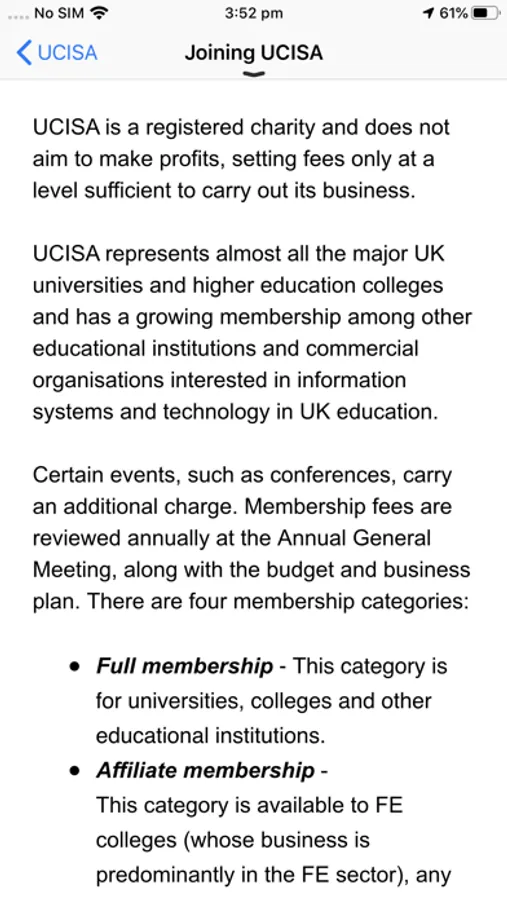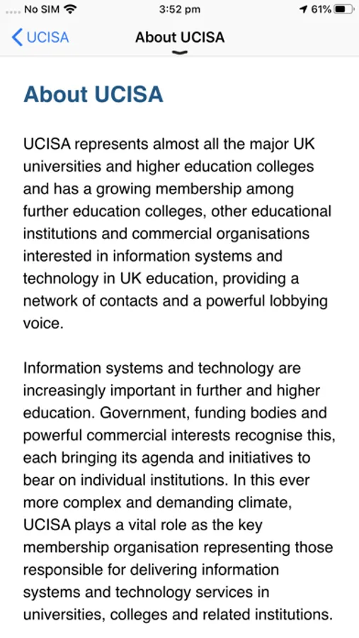 This app gives you a flavour of what does ucisa as well as providing you with details upcoming ucisa events you may be booked on to.