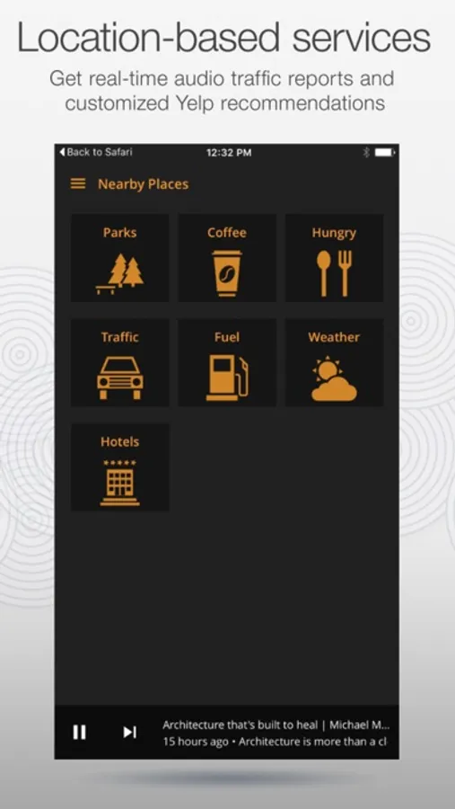 • Connect to compatible in-dash systems* and control Aha directly from your car stereo.