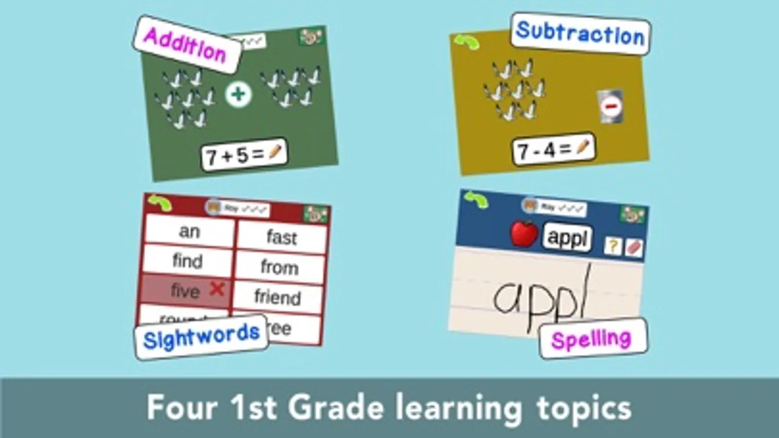 TeachMe: 1st Grade is the third installment in the popular TeachMe series of educational apps. TeachMe: 1st Grade teaches four age-appropriate subjects to first grade children: sight words, addition, subtraction and spelling. Learning subjects align with common core standards to help your child get prepared for 1st Grade. Parents can review performance history for each subject to check how their child is doing.