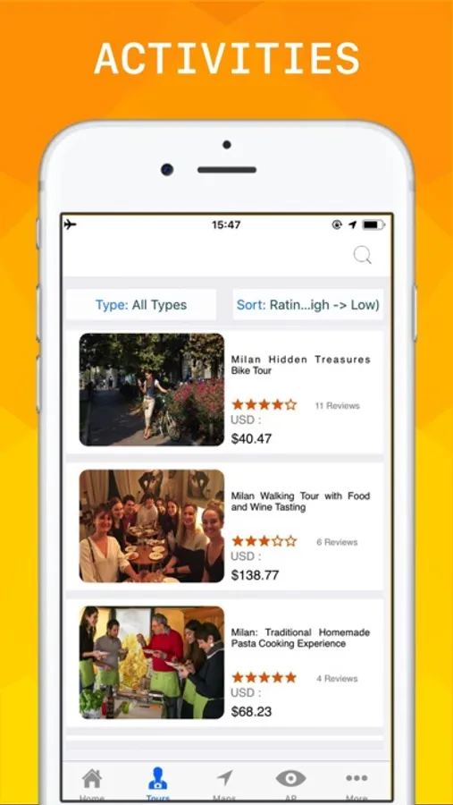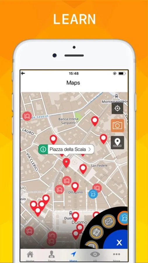 AUGMENTED REALITY, unlike other tourist guides you will be able to discover the city with the best iPhone and iPad tool - AR - Just click on the AR button, turn yourself 360° and view on the screen where the best spots are and how to find them. You can also scroll up and down to view the closest and furthest attraction. Slide through the tutorial for more tips.