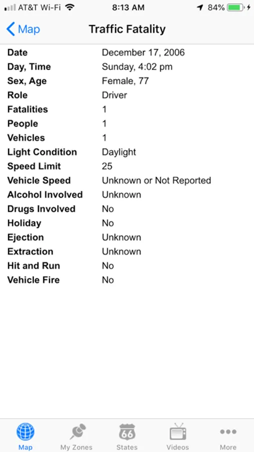 This app gives you a Google Map view of the fatal car accidents that happened around you, around your home, on your way to school, to the office, to the mall, or around town. See gender, age, and time of day when a fatal accident occurred. Know if alcohol or drugs were involved, and whether the victims were ejected, extracted, or just walking down the street.