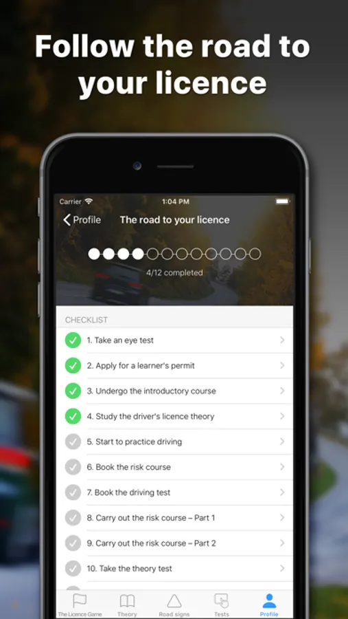 • Smart checklist that guides you through all the steps required to get your driver’s licence.