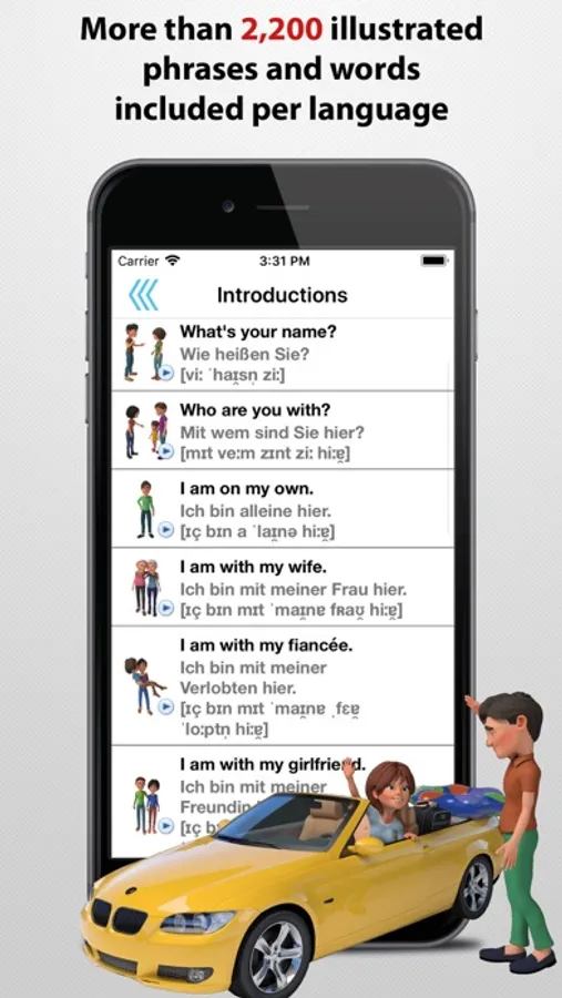 • More than 2,200 illustrated phrases and words with audio tracks are included per language.