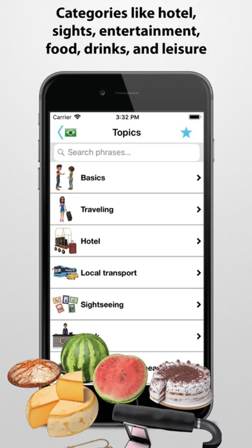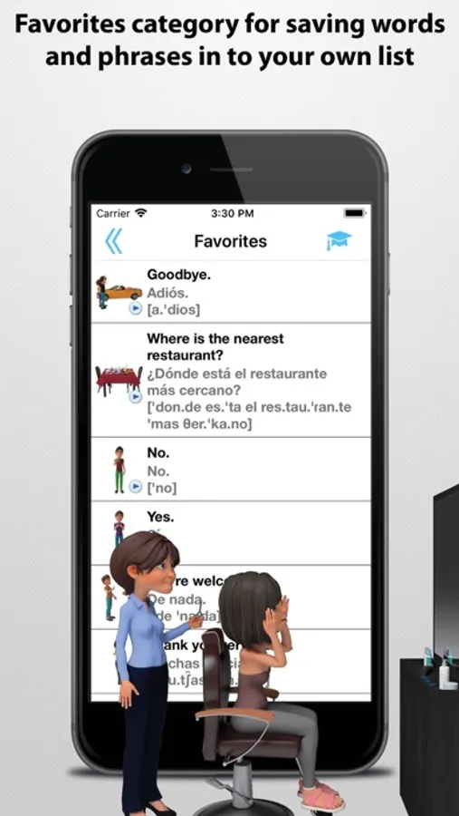 • Favorites category for saving words and phrases in to your own list.