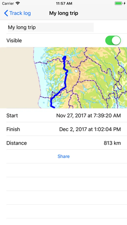 • Track log with import/export of GPX files.