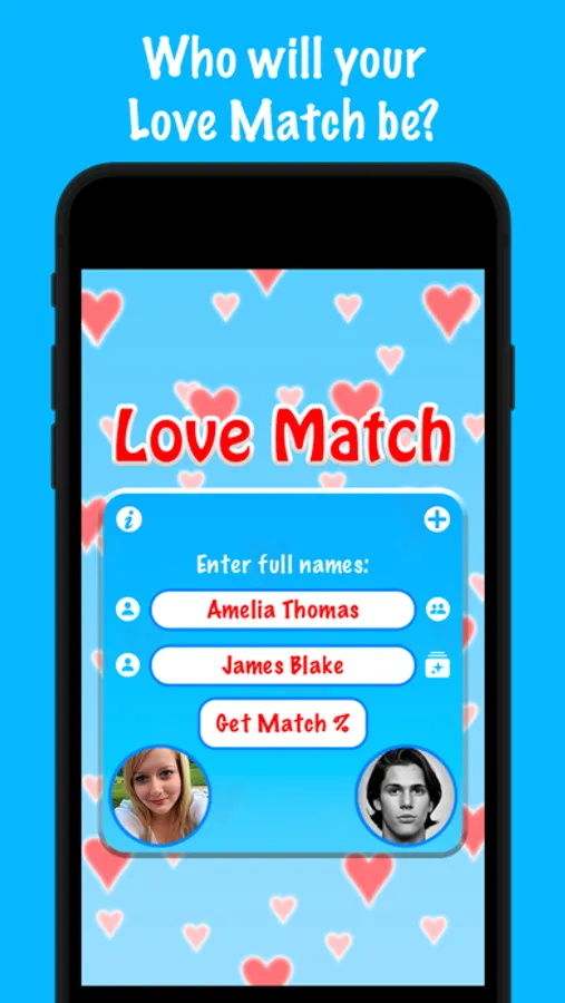 Simply enter the names of two potential lovebirds, and Love Match will do the rest! Our cutting-edge algorithms will calculate your Love Match %, giving you a glimpse into the romantic their compatibility.