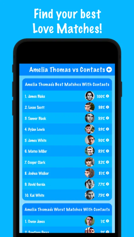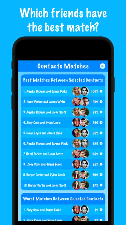 And if that's not enough, Love Match can also automatically scan your contacts to reveal which lucky friends have the best matches. So go ahead and play cupid - you never know, you might just create a new happy couple!