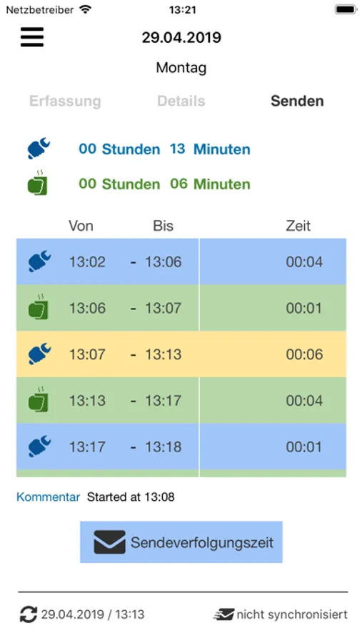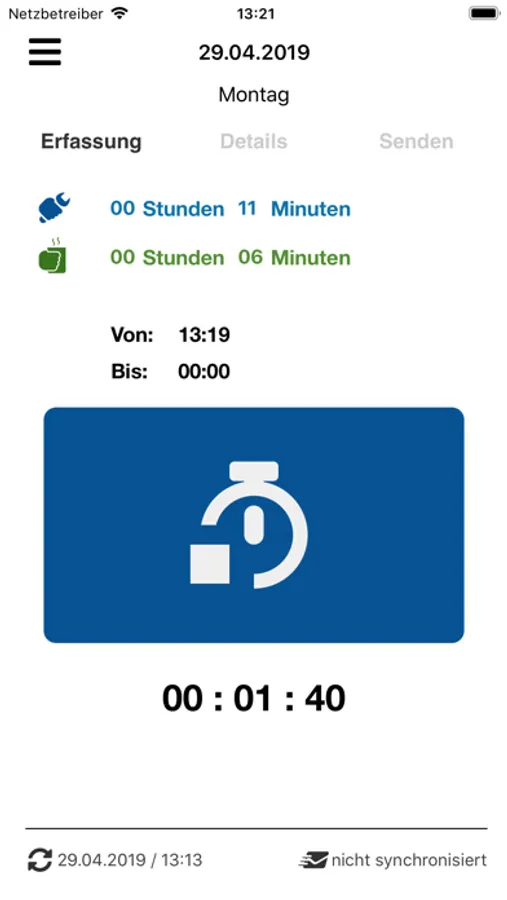 GO! Zeit lässt sich ohne Verbindung zum Internet verwenden. Sobald eine Verbindung besteht, werden Stammdaten (Aufträge, Arbeitsarten) eingelesen und die erfassten Zeiten an GO! Zeit Web übermittelt. Dort lassen sich die Daten kontrollieren und definitiv verbuchen.
