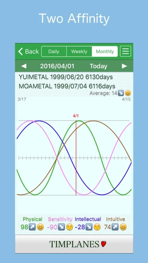 BioAffinity is biorhythm tracking app.