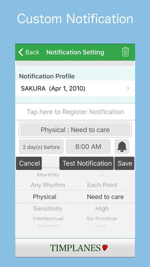 You can customize Biorhythms Notification by conditions and timing that you like.