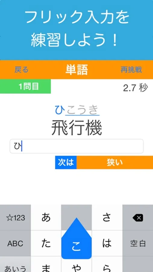- 練習画面ではキーボードをフリックに切替える