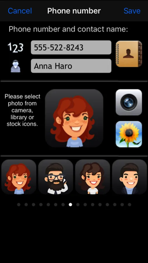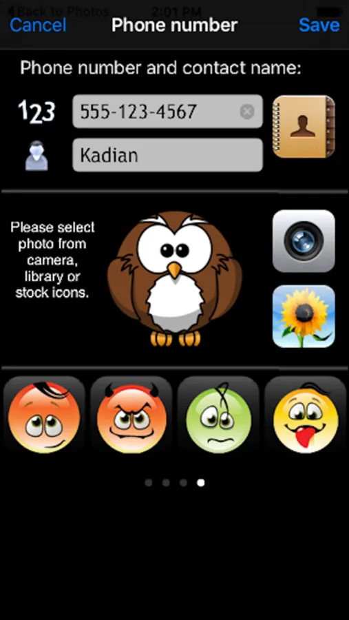4. Option to use photos from Address Book, camera, photo library, or stock icons.
