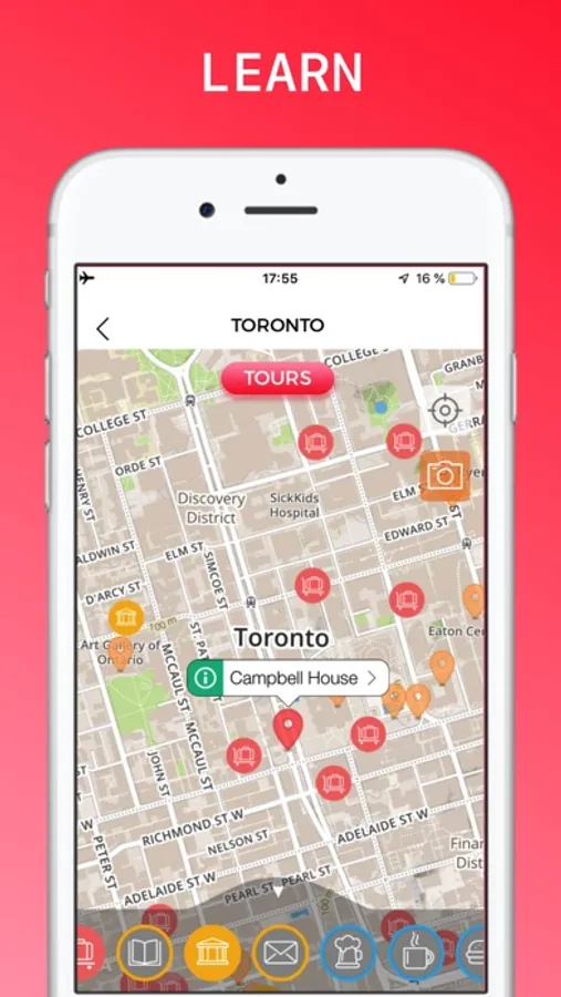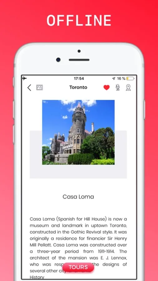AUGMENTED REALITY, unlike other tourist guides you will be able to discover the city with the best iPhone and iPad tool - AR - Just click on the AR button, turn yourself 360° and view on the screen where the best spots are and how to find them. You can also scroll up and down to view the closest and furthest attraction.