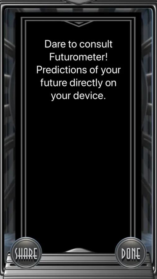 Futurometer speaks your fortune, and you can share your fortune via Facebook, Twitter, Messages and Email.